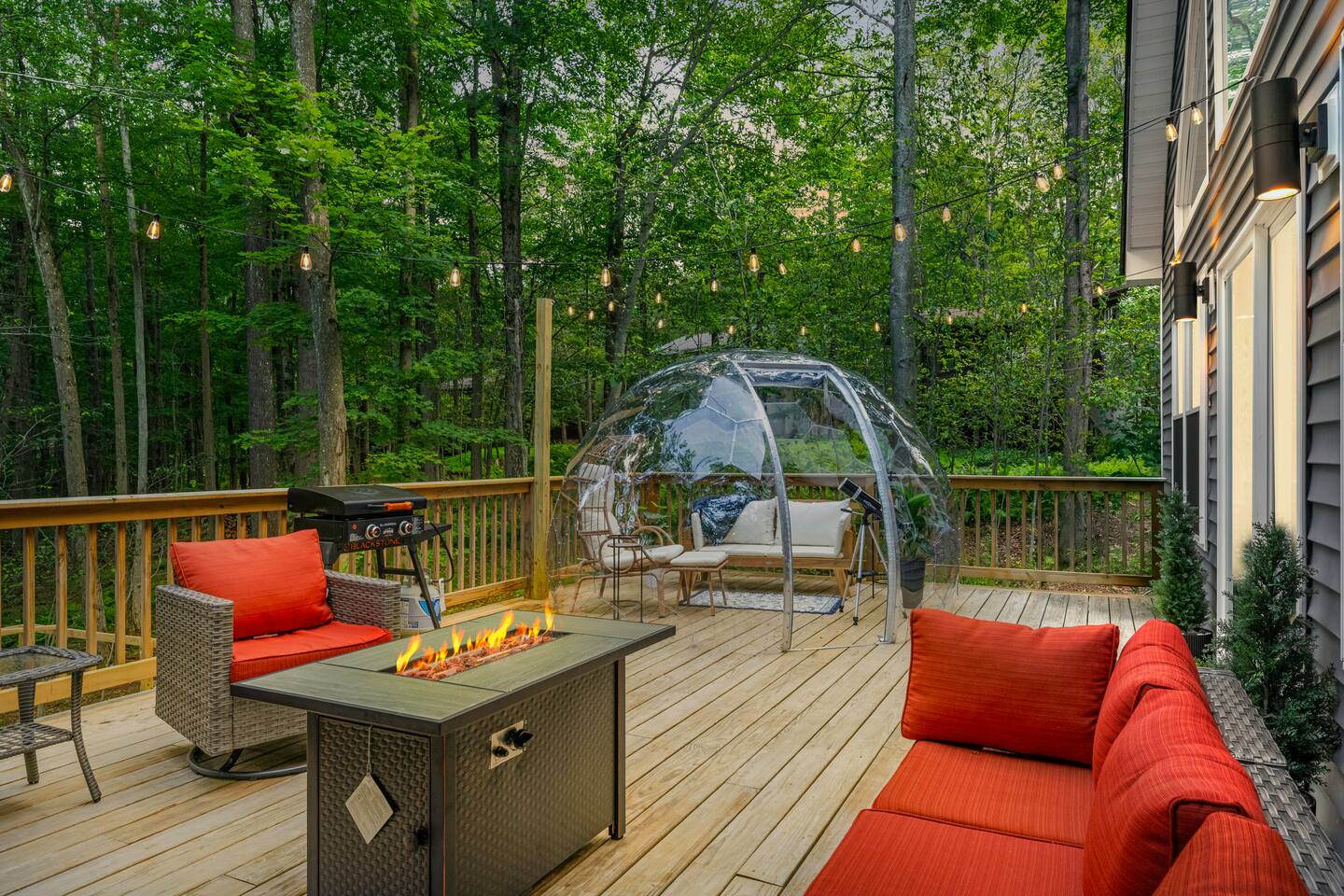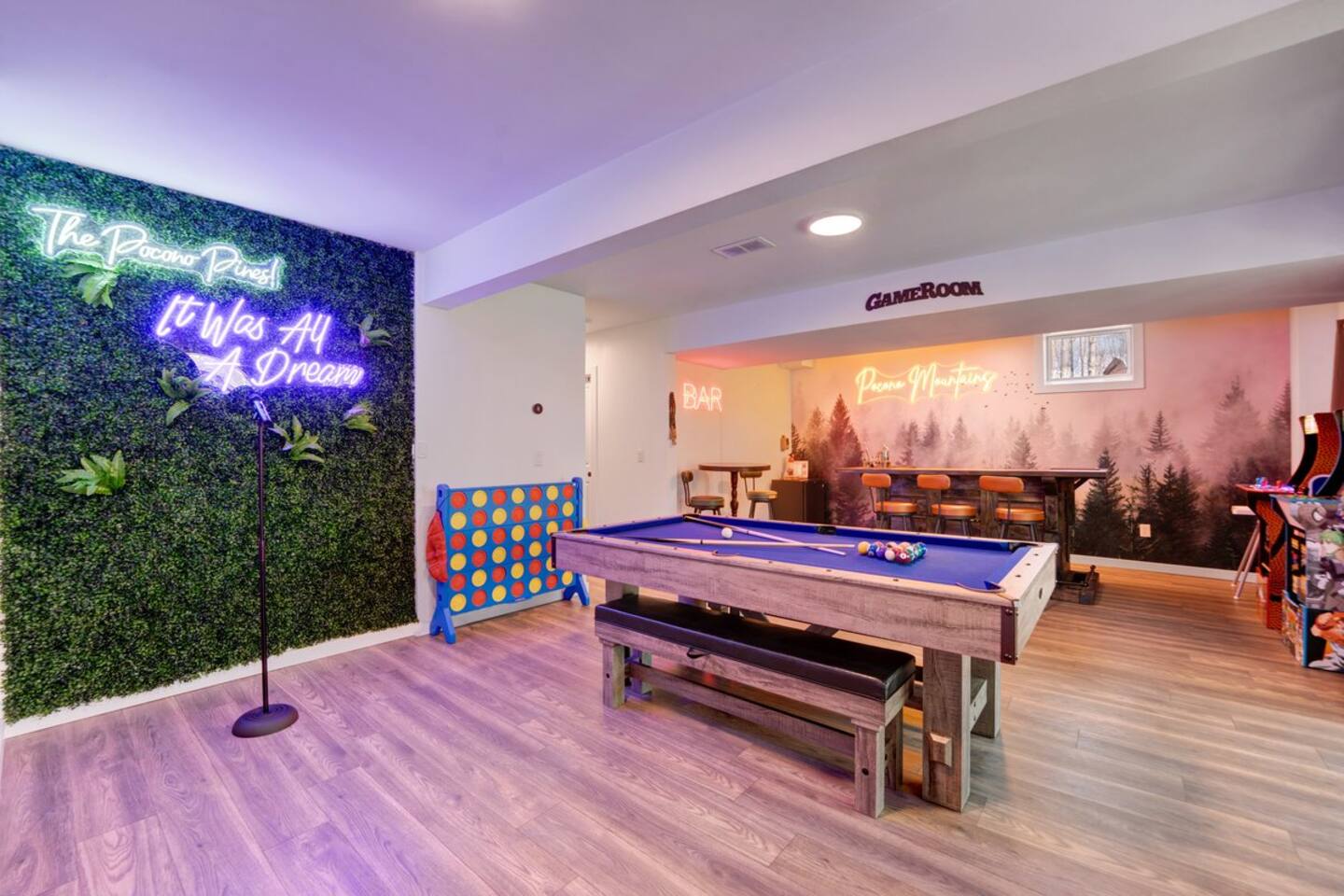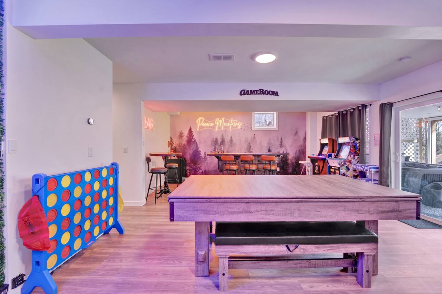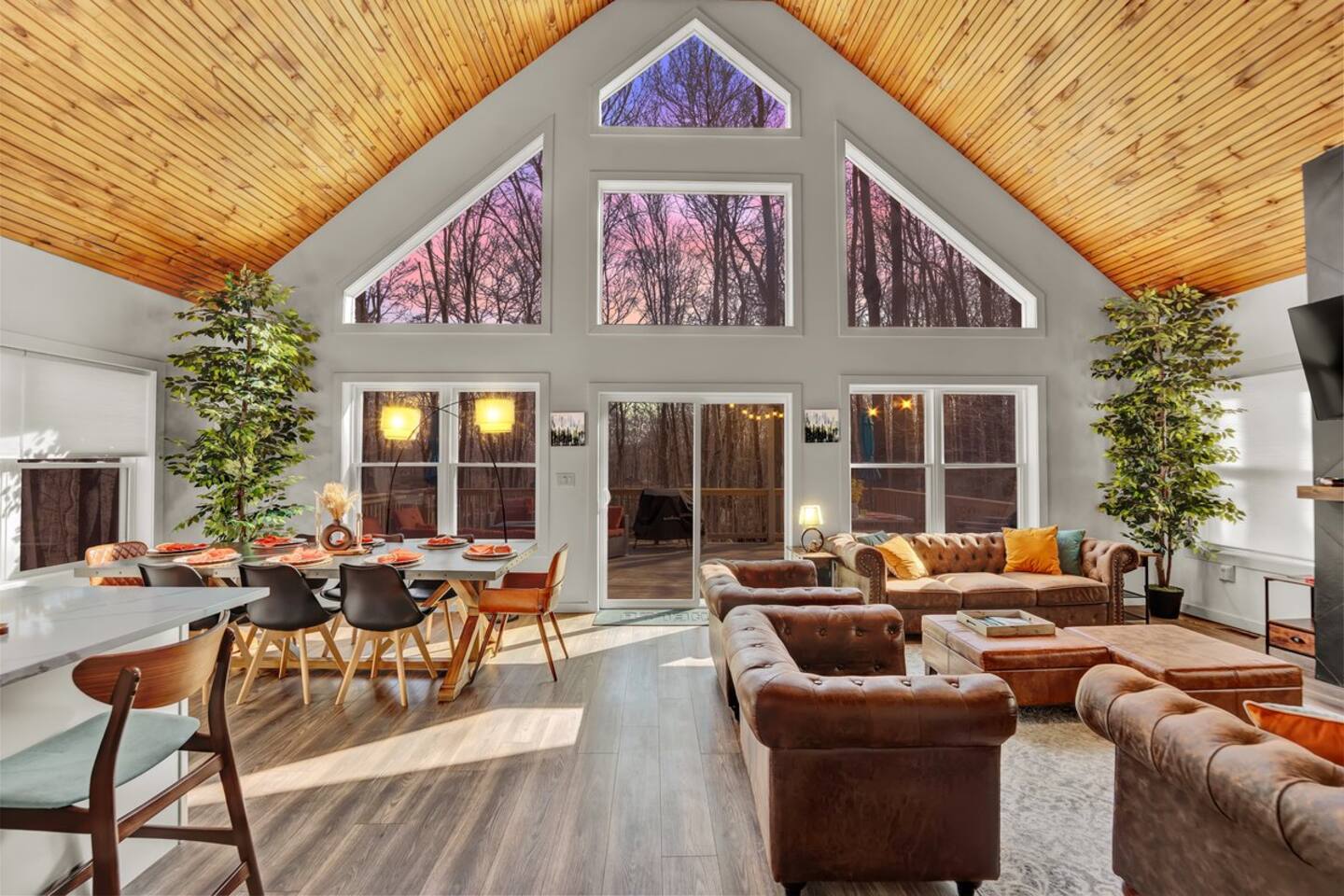 Welcome to Pocono Pines Chalet in Big Bass Lake — a luxurious 5-bed, 4-bath escape designed for unforgettable moments. Unwind in your private hot tub, stargaze from the glowing dome lounge, and enjoy a game room and home theater built for laughter-filled nights. Beaches, pools, and scenic trails are steps away, with Kalahari, Camelback, and Bushkill Falls only minutes from your door. The perfect mix of comfort, adventure, and connection awaits.