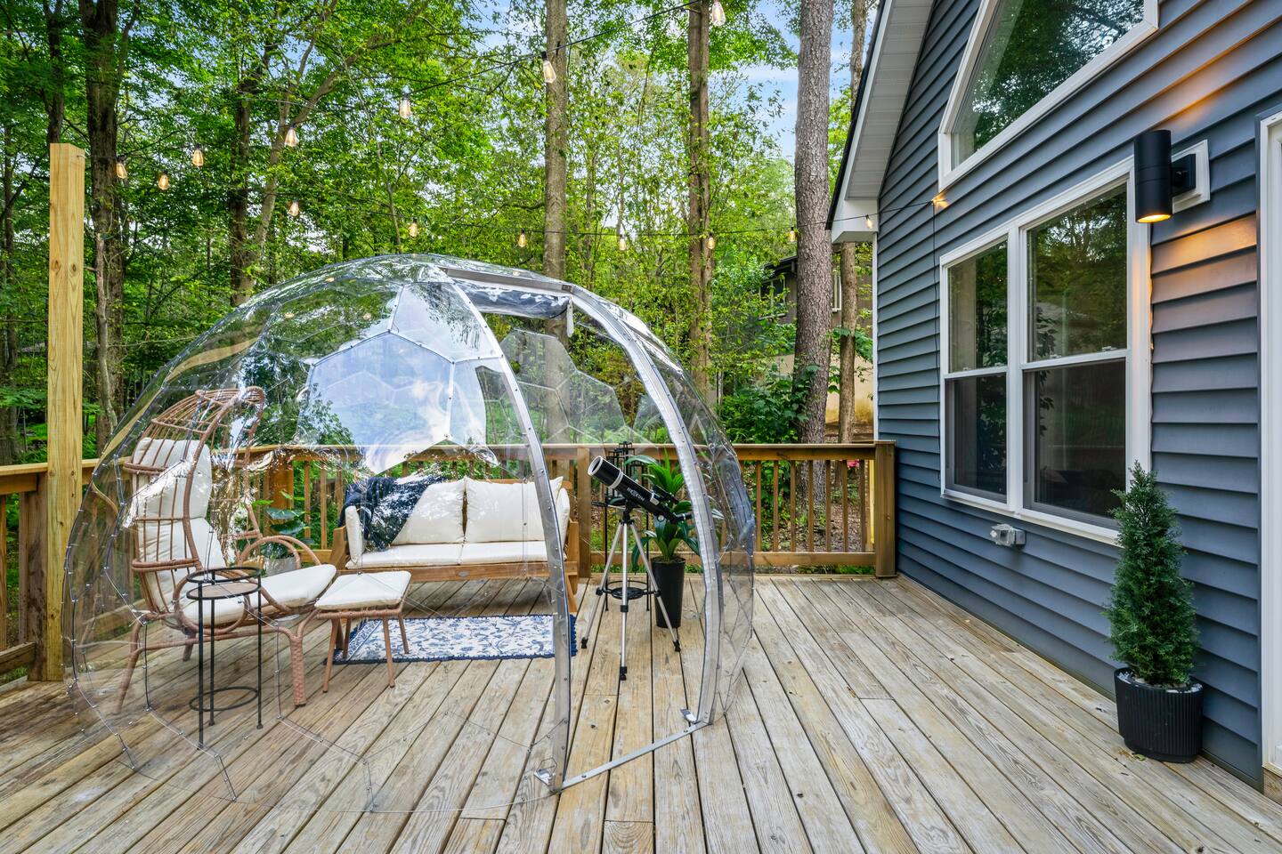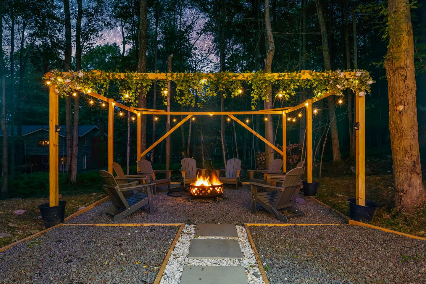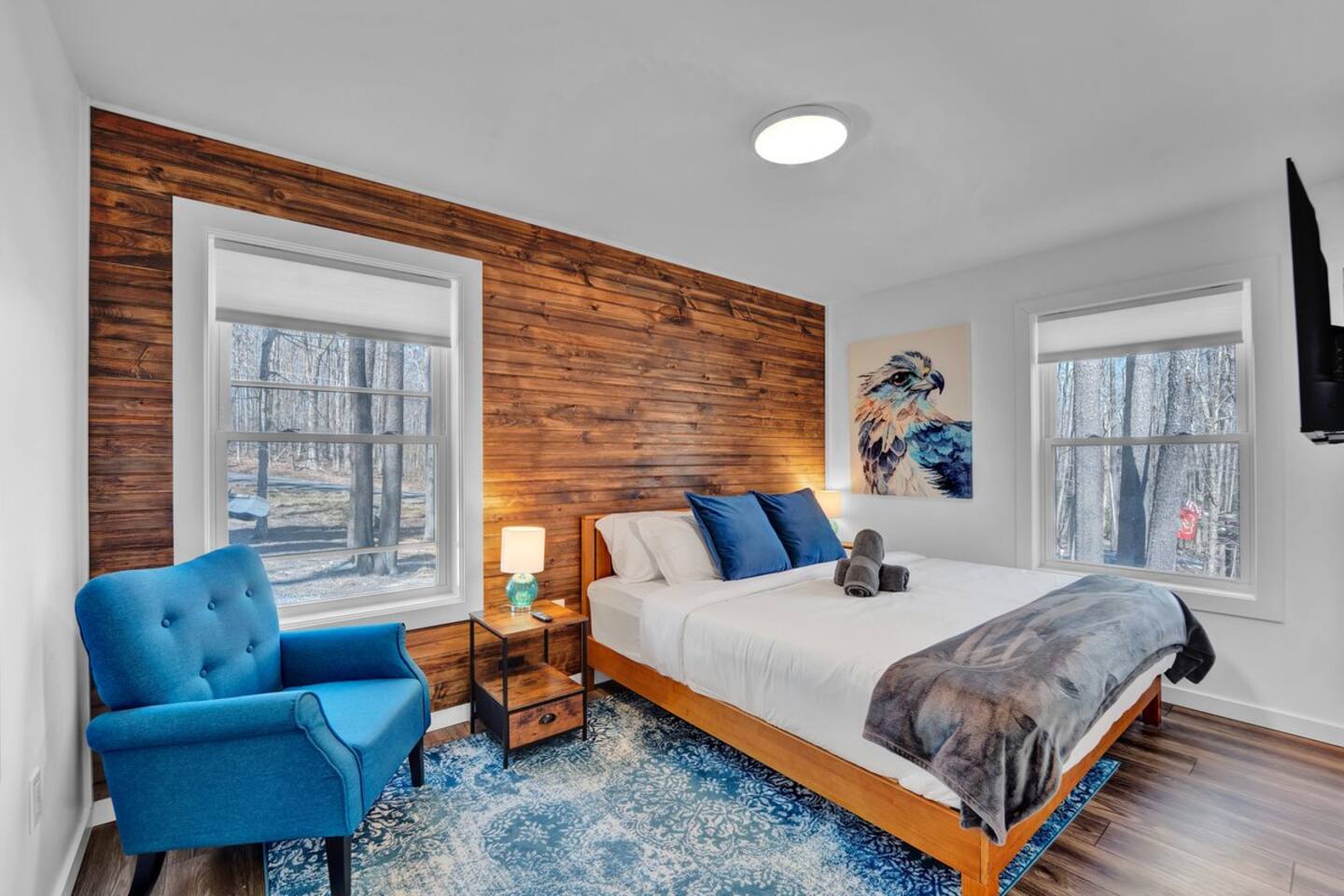 Welcome to Pocono Pines Chalet in Big Bass Lake — a luxurious 5-bed, 4-bath escape designed for unforgettable moments. Unwind in your private hot tub, stargaze from the glowing dome lounge, and enjoy a game room and home theater built for laughter-filled nights. Beaches, pools, and scenic trails are steps away, with Kalahari, Camelback, and Bushkill Falls only minutes from your door. The perfect mix of comfort, adventure, and connection awaits.