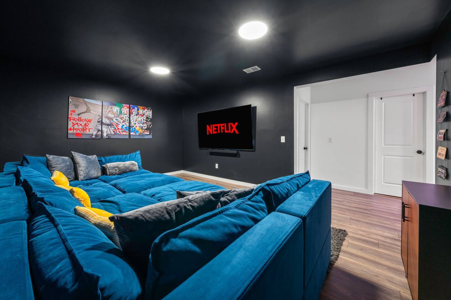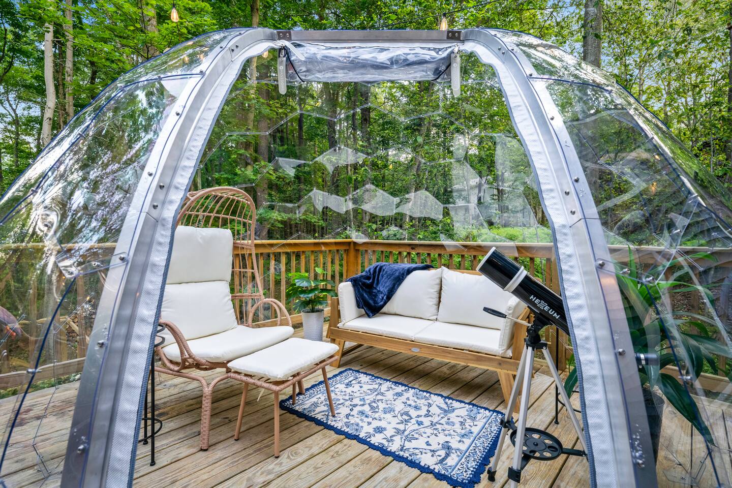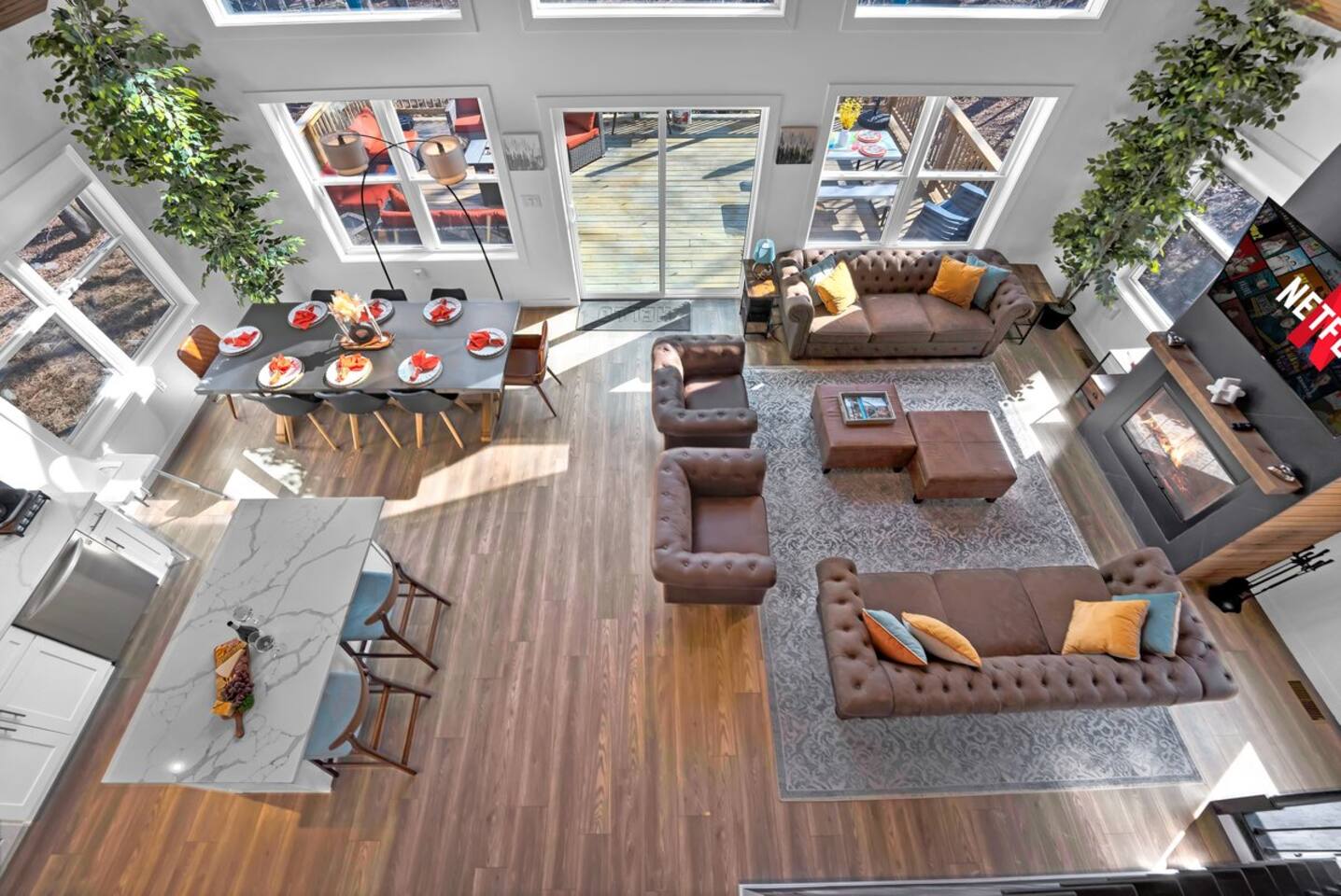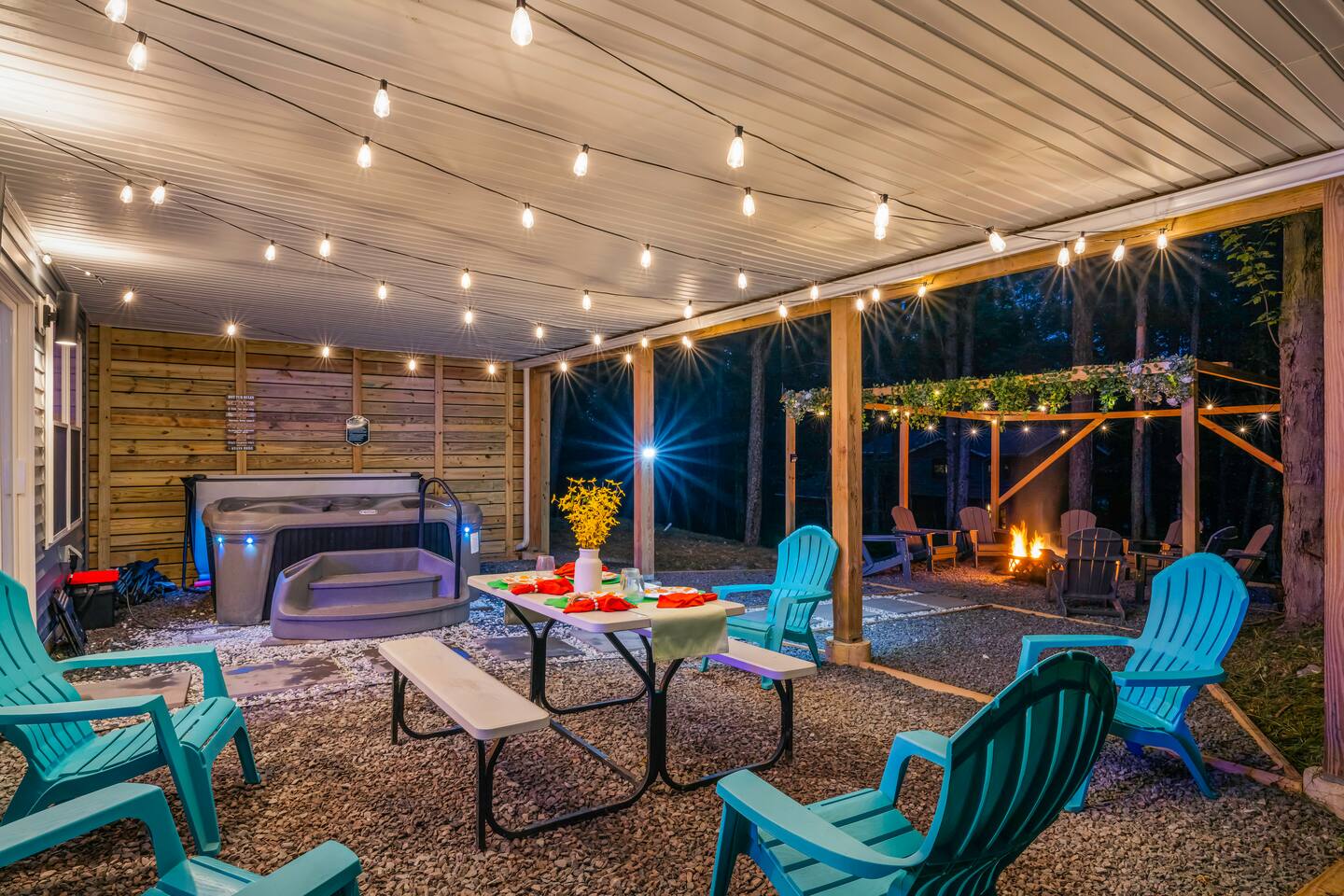 Welcome to Pocono Pines Chalet in Big Bass Lake — a luxurious 5-bed, 4-bath escape designed for unforgettable moments. Unwind in your private hot tub, stargaze from the glowing dome lounge, and enjoy a game room and home theater built for laughter-filled nights. Beaches, pools, and scenic trails are steps away, with Kalahari, Camelback, and Bushkill Falls only minutes from your door. The perfect mix of comfort, adventure, and connection awaits.